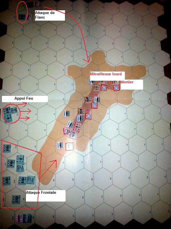 Bruno ne peut rallier son leader dans son tour. Il aura le bon réflexe cependant en remodelant son dispositif (recentrage du lieutenant, repositionnement de la mitrailleuse lourde et du mortier pour faire face au déploiement de Laurent).