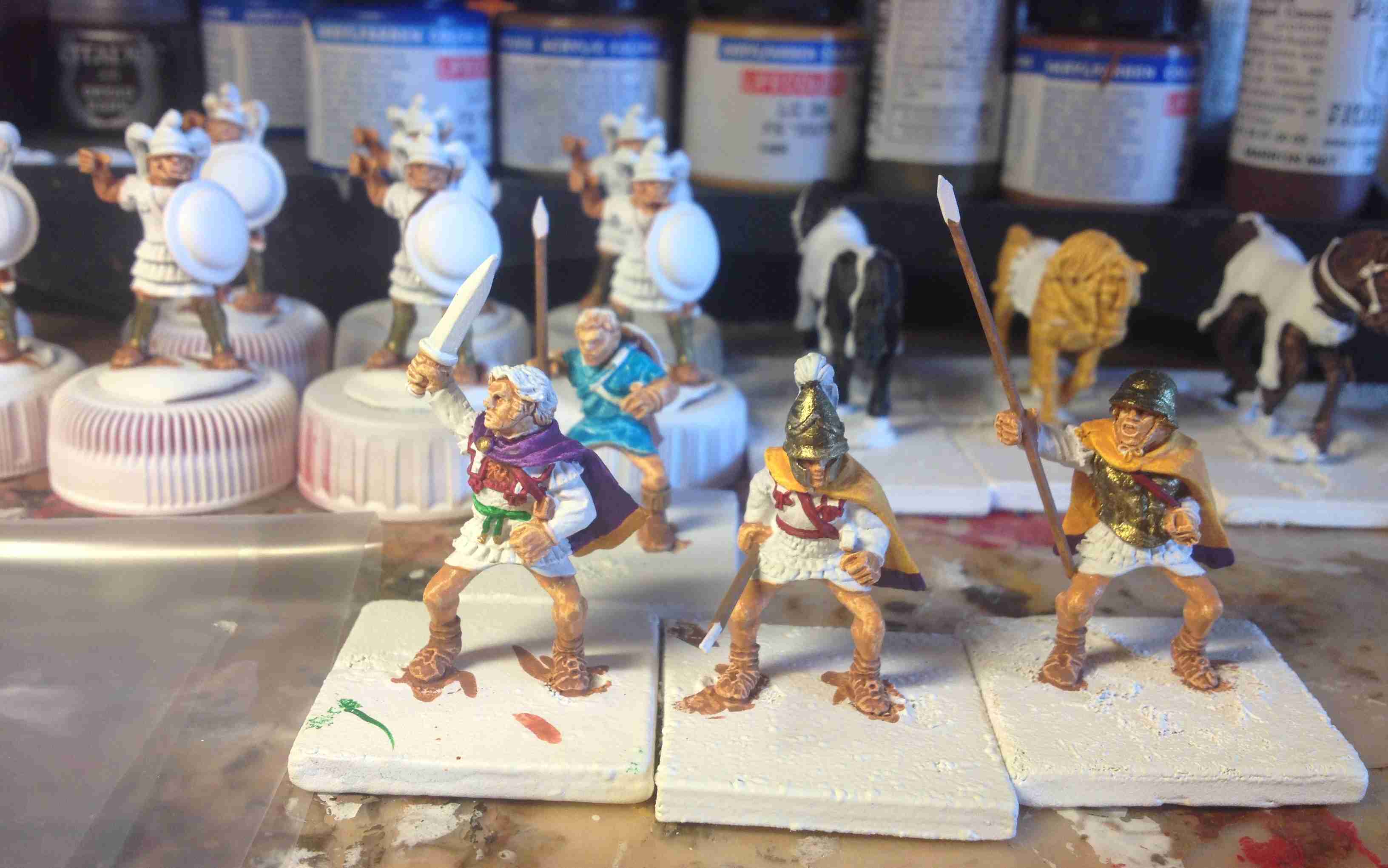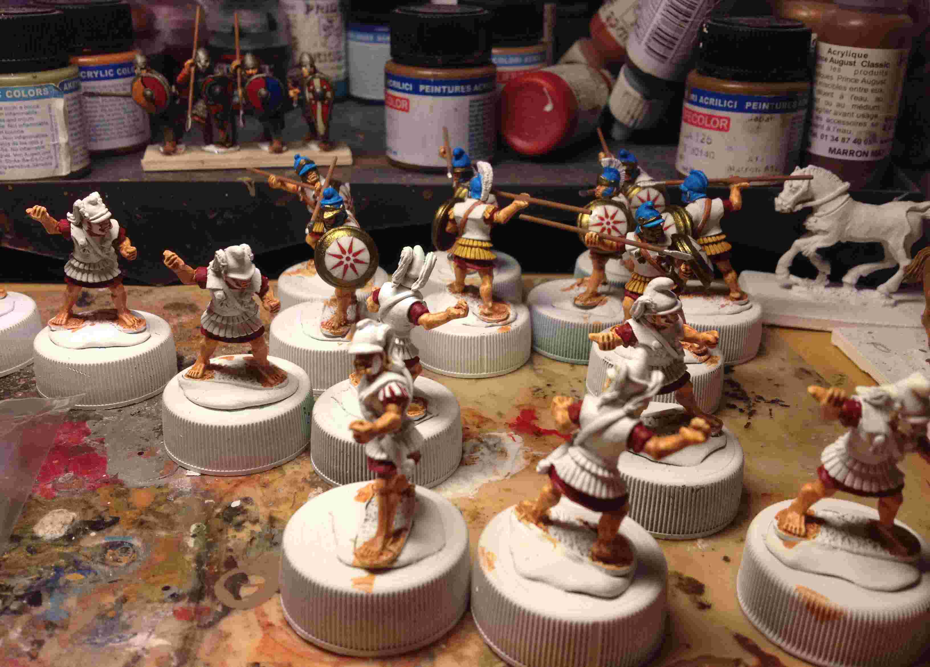 Après des semaines de disette (surmenage de fin d'année scolaire et vacances familiales ont paradoxalement agi de concert pour m'éloigner de l'établi...), reprise à un rythme de sénateur des travaux de peinture pour boucler enfin l'armée d'Alexandre.