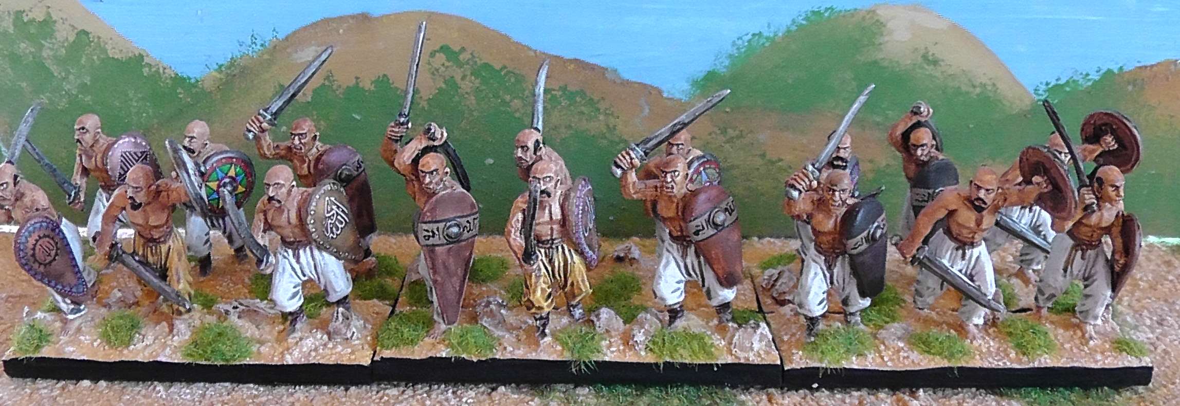 Dilemme de figuriniste historique : comment représenter des esclaves noirs révoltés quand la gamme Perry ne propose que des Azerbaïdjanais pour figurer des bandes guerrières ? Simple. Sacrifier la fidélité historique sur l'autel de l'esthétisme figurinistique. Sans vergogne !