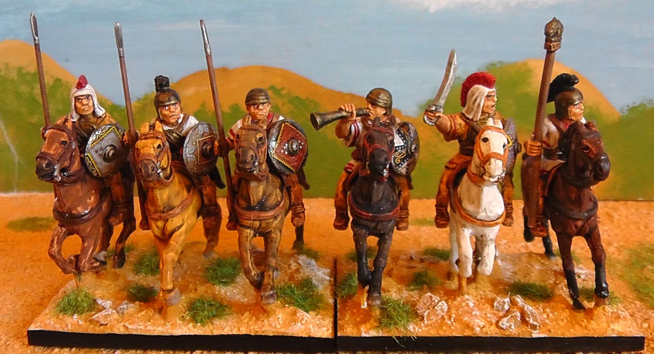 Dans l'intervalle, je m'aperçois que les transferts LBM pour les boucliers des cavaliers espagnols sont bien trop petits pour les recouvrir. En fait les transferts sont adaptés aux boucliers des Javeliniers (ronds eux aussi) mais pas des cavaliers pour lesquels il n'existe pas de référence. Je décide donc, face au retard de Caliver, de commander chez Crusader directement un blister de Javeliniers Espagnols. J'ai en effet besoin de 6 boucliers pour mes 2 éléments de Cv et je décide de peindre deux javeliniers en lieu et place du Ps (S) Lybien. Pas très économique, mais finalement un peu plus avantageux que le blister de boucliers qui en propose 40 (et il ne m'en faut que 6) pour le prix d'un blister de figs !