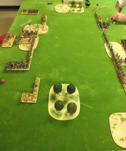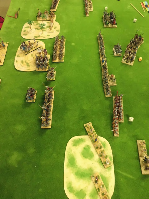 Une belle bagarre avec moult manoeuvres habiles de part et d'autre entre Palmyre commandée par Zénobie et assistée par des alliés Arméniens (figurines A&A) et le Haut Empire Romain au corps allié Sarmate (figs Foundry).